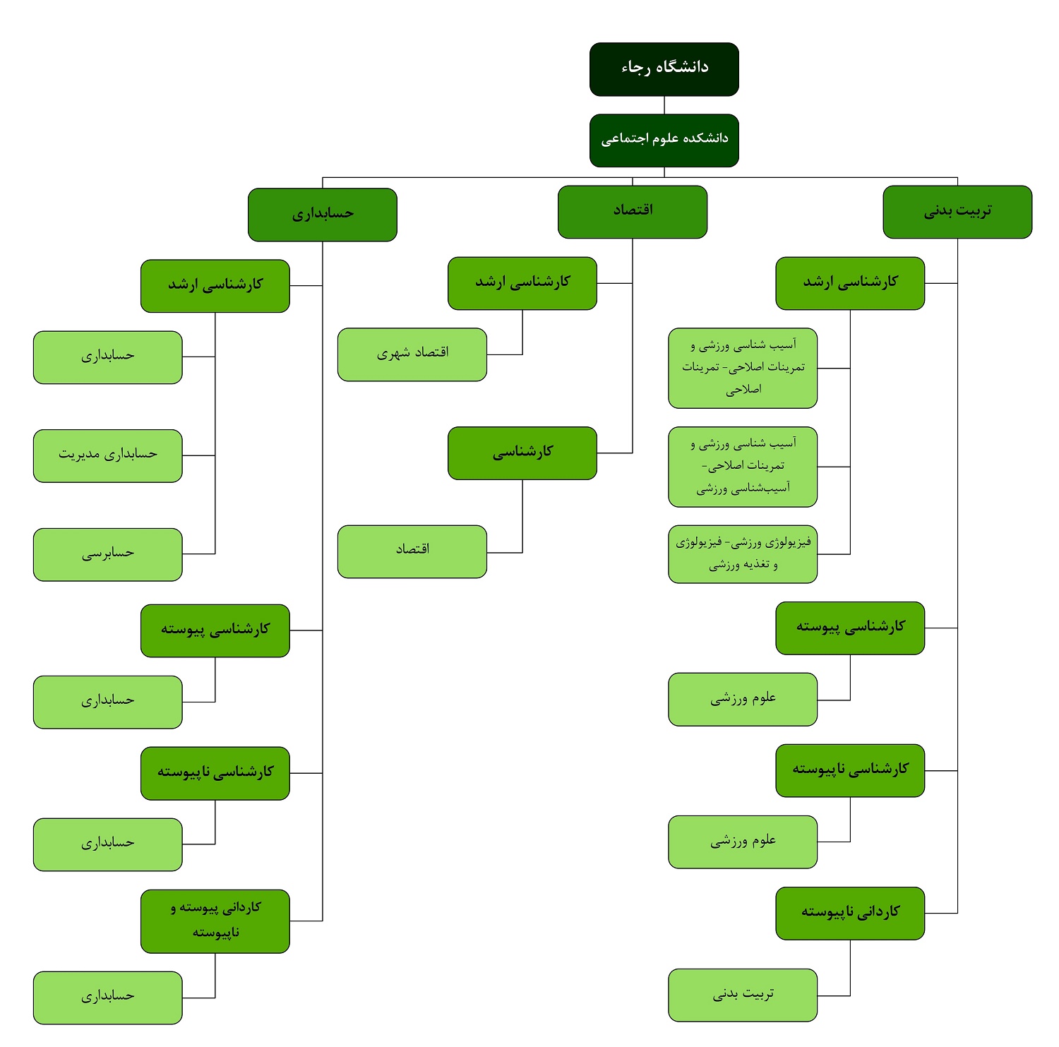 دانشگاه رجاء مجري رشته حسابداري از سال 1374 بوده و به تدريج اين رشته ی پرتقاضا به 6 رشته مقطع مختلف گسترش یافته است.از شاخص ترین فعالیتهای اين گروه از دانشکده مي توان به حضور اساتيد مجرب و امكانات آموزشي مناسب ، انتشار سيزده شماره فصلنامه علمي-تخصصي با عنوان نظريه هاي نوين حسابداري ، انتشار چهار شماره فصلنامه علمي-ترویجی با عنوان نظريه هاي نوين اقتصاد و میزبانی چهارمين همايش سراسري سالانه حسابداري كشور در سال 1389 اشاره نمود. در سال 1386 با جذب دانشجو در رشته های علوم اقتصادي و در سال 1391 در رشته تربیت بدنی تشکیل دانشکده اي مستقل به نام دانشکده علوم اجتماعی را داده است .هم اکنون این دانشکده دارای سه گروه آموزشي حسابداري، اقتصاد و تربیت بدنی در 14 رشته – مقطع تحصيلي مختلف است که با تاييد و تصويب وزارت علوم،تحقیقات و فناوری به فعاليت مي پردازد.